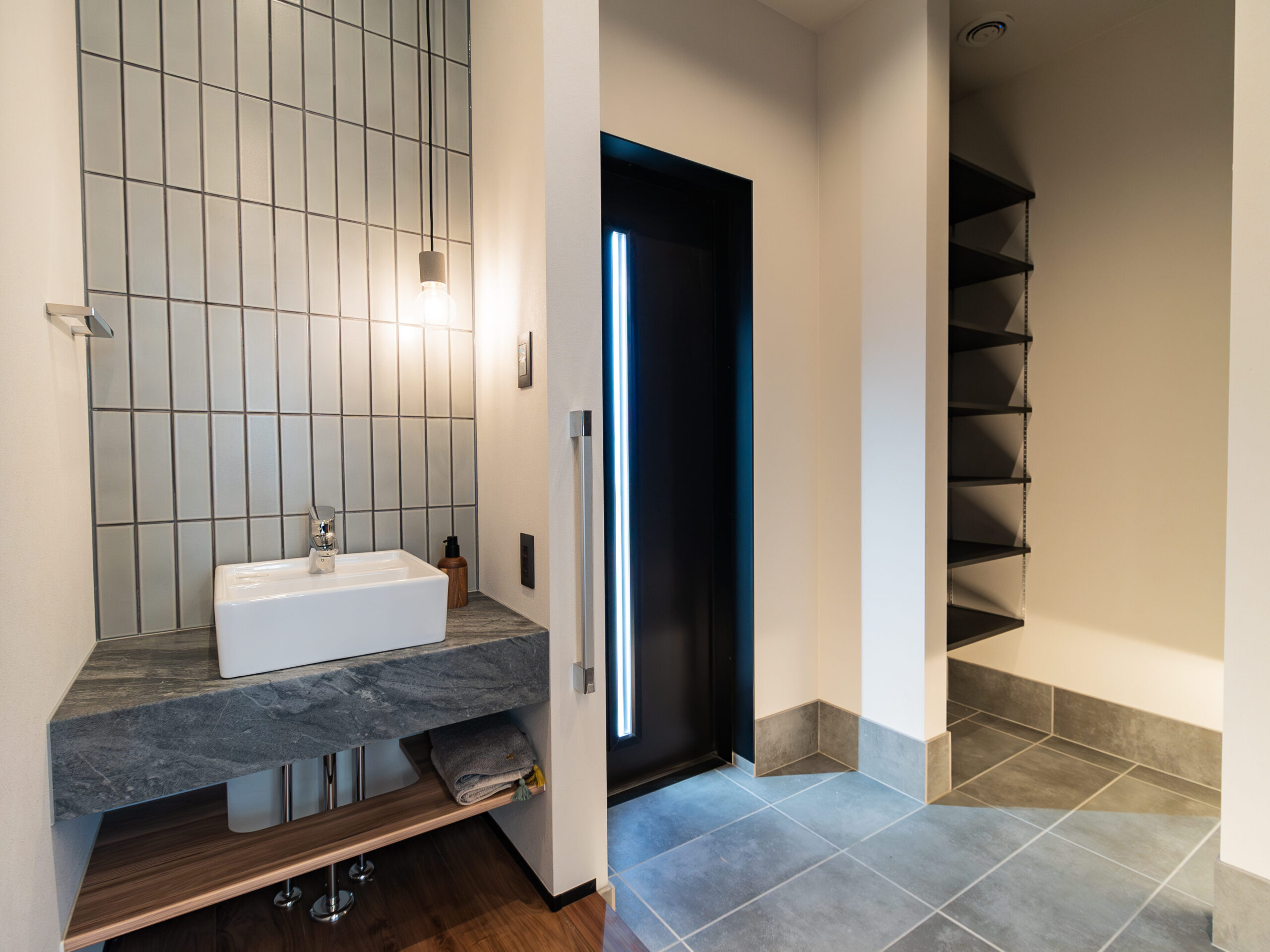 玄関のすぐ横に設置されたサブ洗面。