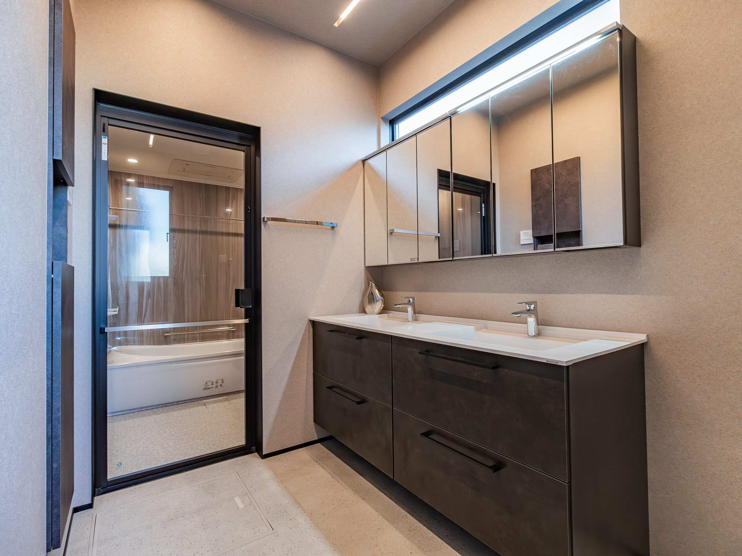 2つの洗面ボウルで、朝の身支度もスムーズに。爽やかな空間で、ストレスのない毎日が叶います。