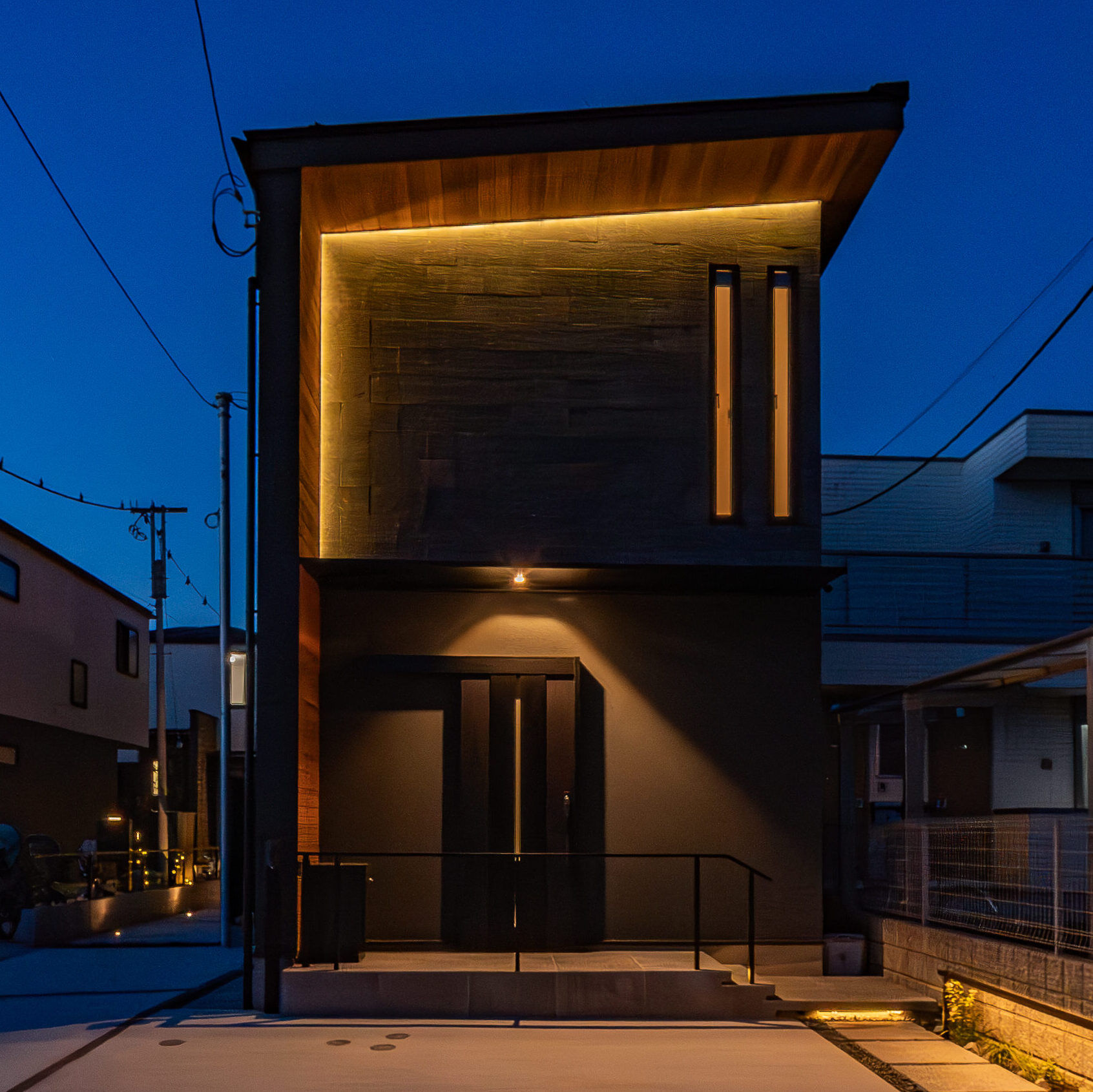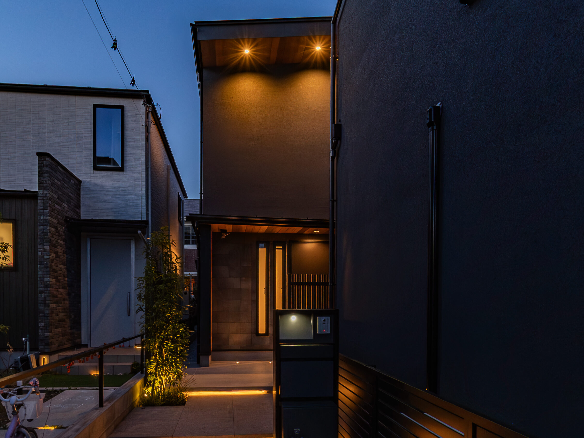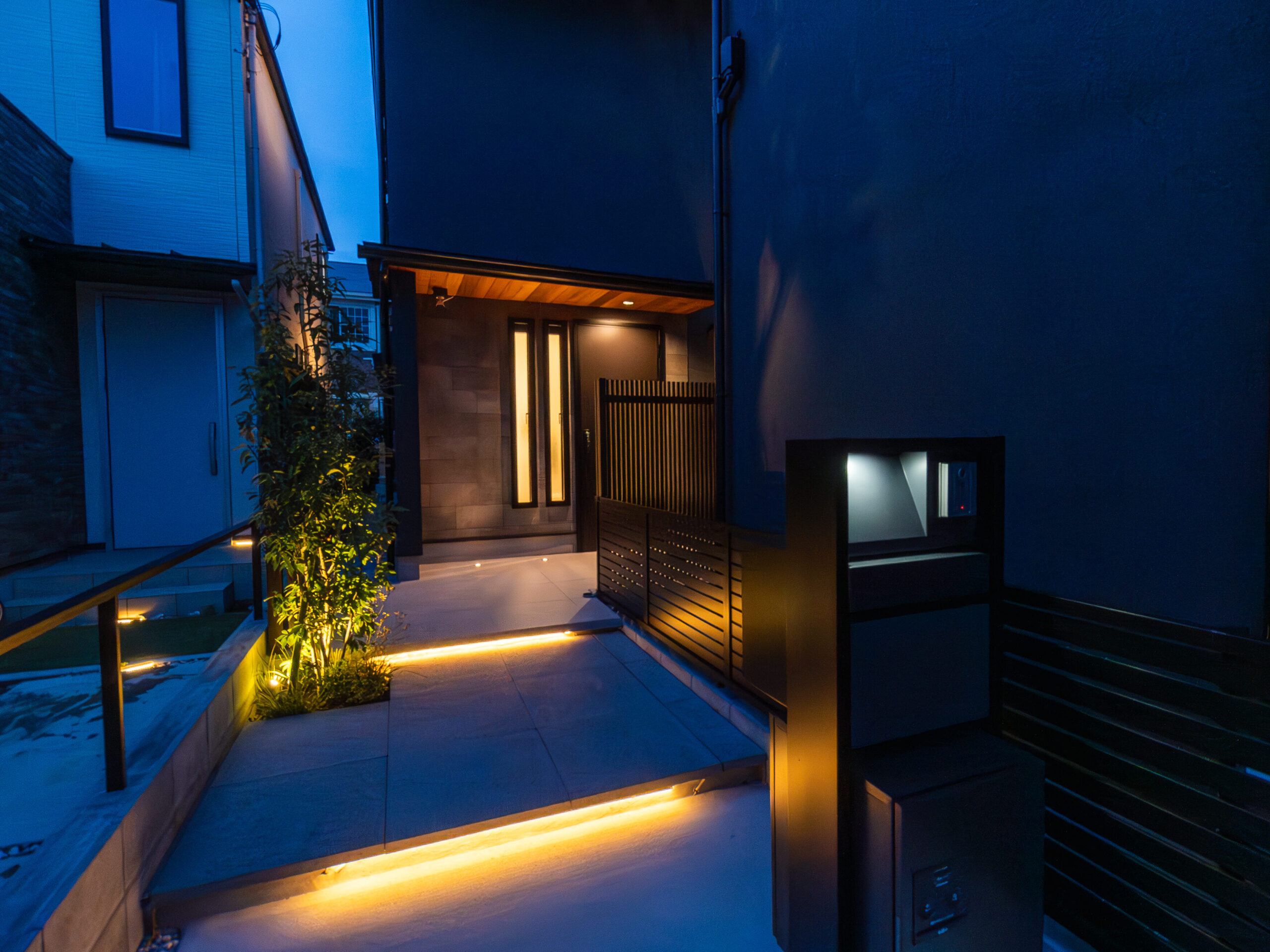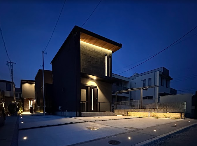 夜間には、まるでお家を縁取るようにラインが浮かび上がります。